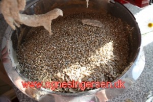 Så blander jeg kernerne i: