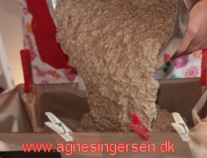 Et tip: Hvis du bruger bagepapir, er det nemt at holde papiret oppe med klemmer.